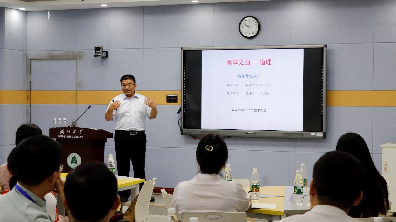 湖北省“教学名师”张海谋教授以《教学之道》为主题,分别从道义、道理、道路、道德四个方面总结自己在多年一线教学过程中的经验和方法,系统阐述“为谁培养人?培养什么人?如何培养人?谁来培养人?”的问题。张海谋教授介绍多种可以借鉴的方法,包括根据课程性质利用问题教学法、讨论式教学法等提高教学效率,激发员工学习热情;利用写教研论文和申报教学成果奖来总结教学经验,琢磨并梳理自己教学理念的逻辑。最后张海谋教授提出青年教师须起到传播正能量的作用,把立德树人当成事业而不仅仅是一份工作,这样才会有职业成就感。